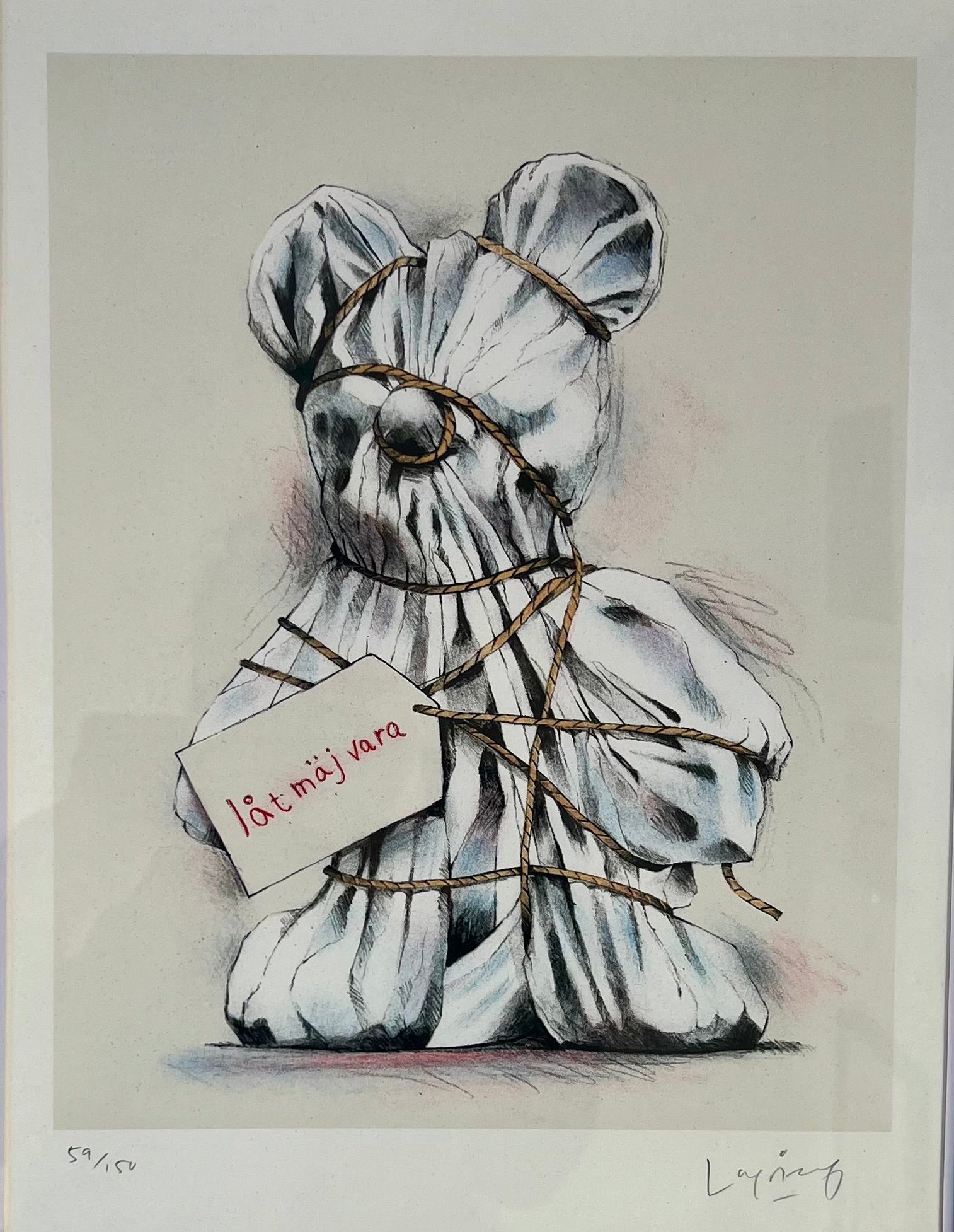 Inramad Lasse Åberg litografi, mått 33x43 cm